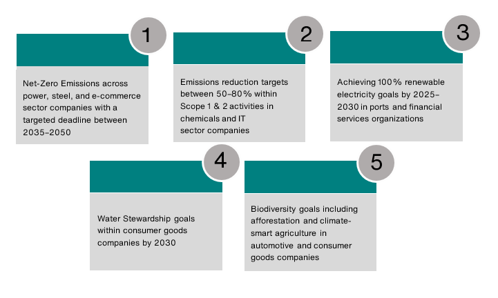 Most prevalent ESG ambitions among BSE 30 companies include the following: