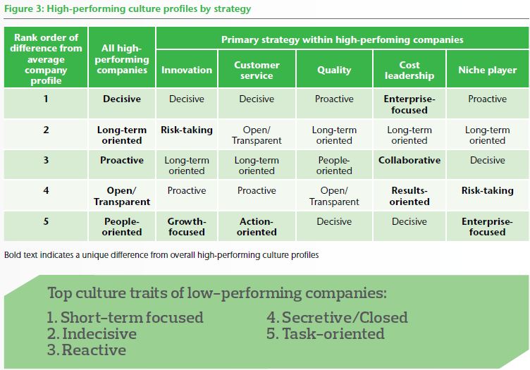 Bold text indicates a unique difference from overall high-performing culture profiles