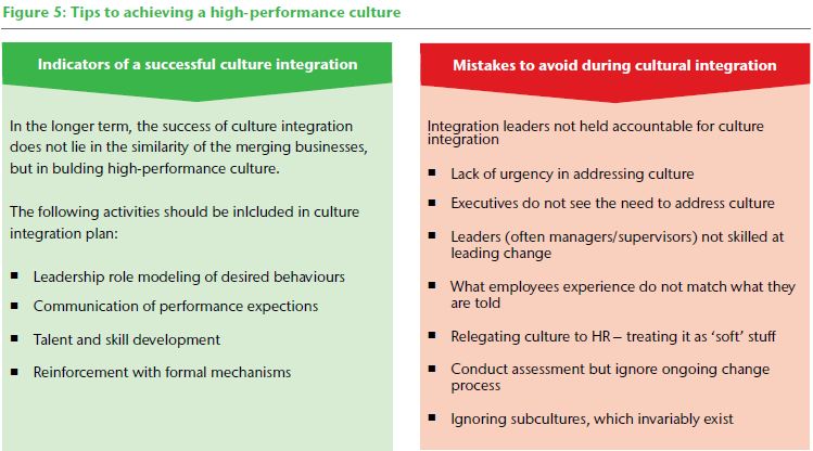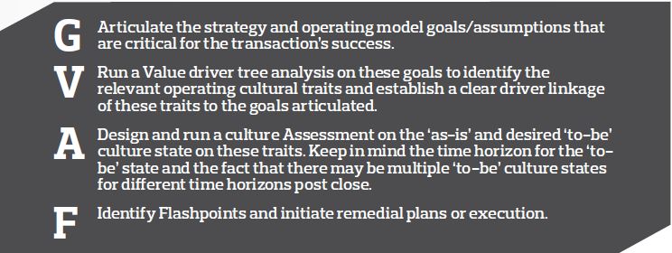 It’s important to appreciate that a shift is possible only when you have clarity on what the flashpoints are, how they are linked to your deal goals, where you need to focus, the execution plan/dos & don’ts (see Figure 5 on the following page), and finally, how the outcome of culture alignment is ‘measured’.