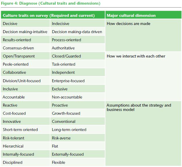 1. Desired culture has to be defined in four to five key traits and clearly linked to strategic goals.